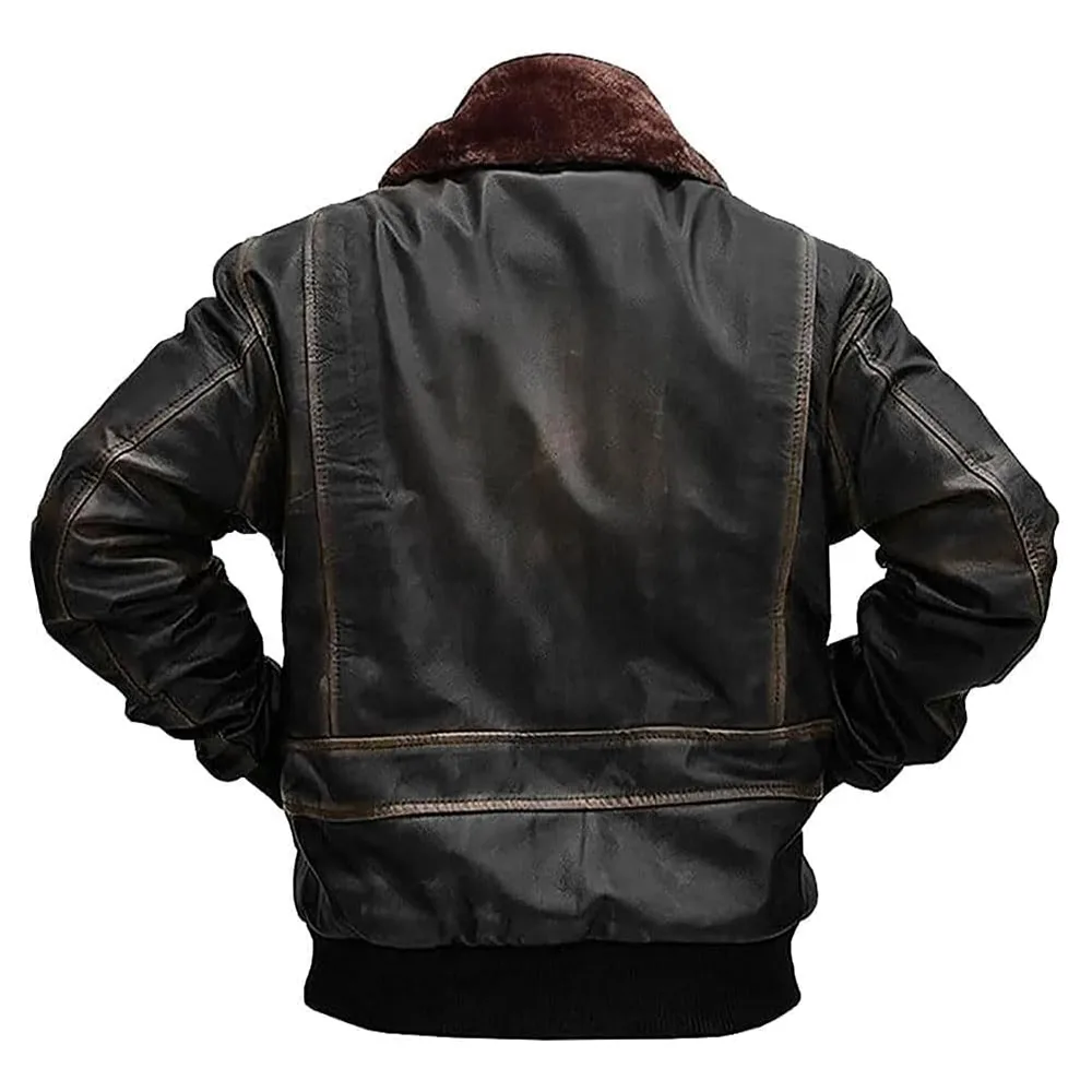 Buy A2 Fur Distressed Black Jacket For Men And Women to look dominant yet practical. This famous A2 design centres on comfort. Manufacturers coated the interior with plush viscose, keeping it warm without making it suffocate. Among its best features is the fur-style turn-down collar. Moreover, it not only provides a certain degree of cosiness but also brings a touch of classic aviator elegance. The rib knitted cuffs and hemline offer insulation as well as a tight fit that locks in warmth. These details help maintain the jacket’s shape and stability. Moreover, each feature makes it an excellent fit on the body, whether on the bike, on an evening stroll, or styling it on a casual weekend look. The balance of softness inside and tough leather outside makes this jacket ideal for seeking comfort wrapped in a vintage charm.