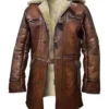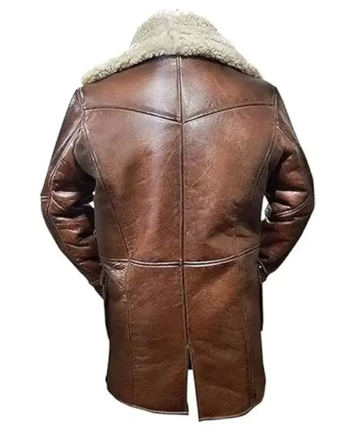 We built this Bane Coat of Batman Dark Knight Genuine Leather Jacket For Sale to withstand movement, weight, and prolonged use. The faux shearling lining gives the coat an inner density so that it keeps you warm even in freezing conditions. Moreover, the designers securely attach the button closures, reducing stress over repeated fastening. The long cut features reinforced seams to avoid pulling or warping at the points of pressure. The notch lapel shearling collar gives structure to your face and shields your neck from cold winds. In addition, we designed the pockets with functionality and to enhance the coat’s authentic appeal. The jacket is structured and stability-oriented. Therefore, you can wear it for long periods during events, outdoor occasions, and layered styling without losing its shape. So, if you are a fan of the character or love rugged fashion, this coat from our Men Coats collection is essential.