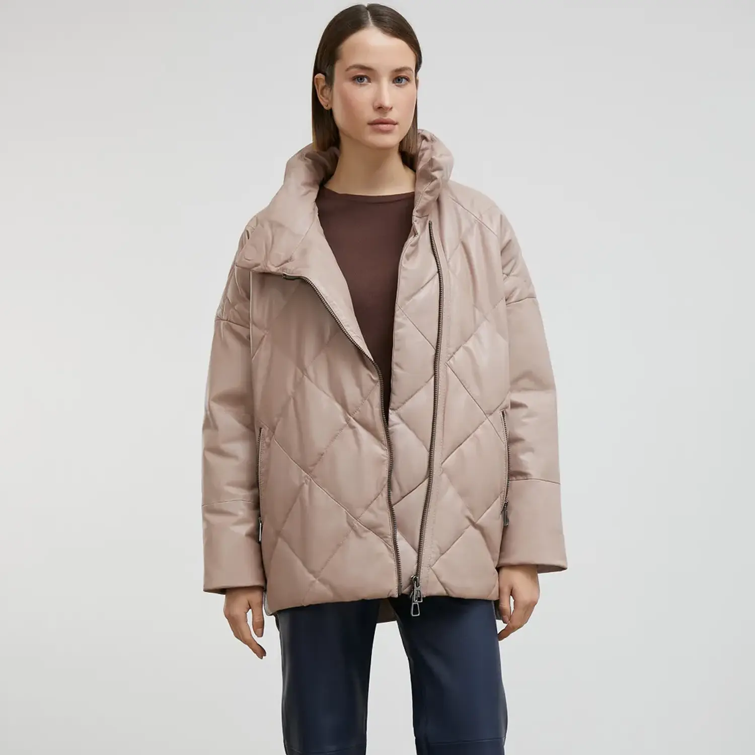 Discover the perfect balance of style and simplicity with this neutral-tone coat, designed for a sleek look that suits any occasion. The women’s beige puffer coat is manufactured from lambskin or PU leather with polyester insulation. Its clean beige linings on glossy leather add a dramatic texture, while the front zipper closure and two large side pockets with zippers bring eye-catching details to the style. The stand collar and long sleeves add extra support and warmth for the neck and hands, and one inside pocket provides enough storage for your mobile and wallet. The puffer insulation gives your body a voluminous look and protection in winter and fall. Whether layer it for fashion purposes or seek protection in cold weather, this Beige Puffer Coat Womens can effortlessly adapt to any situation.
