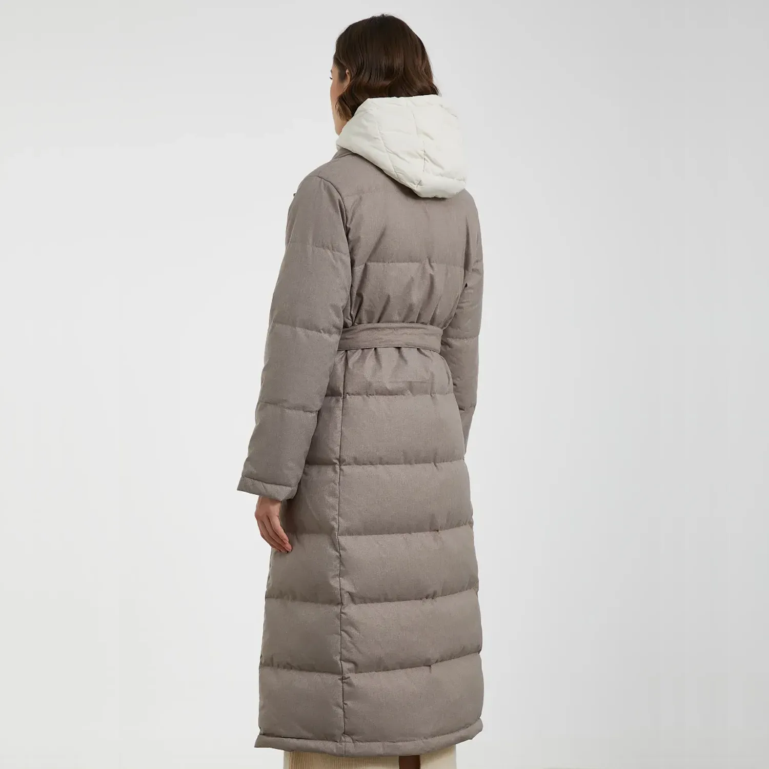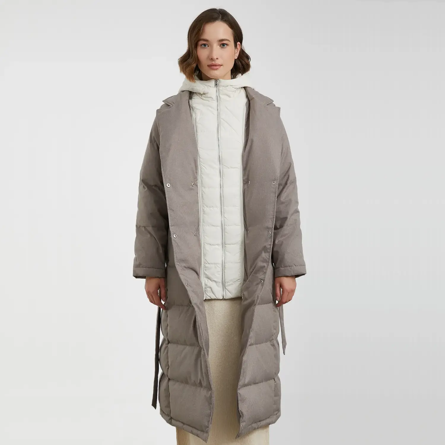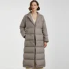 Beige Long Puffer Jacket with High-Quality Exterior