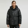 Experience the thermal mystery in our latest black longline puffer jacket. Designed to provide exceptional insulation, this jacket is made from soft lambskin or PU leather to ensure strength and a luxurious feel. The quilted design and polyester lining trap heat while remaining lightweight and comfortable. Its smooth black finish adds a touch of elegance, making it versatile to match various outfits. This black puffer jacket women has a stand collar and detachable hood for extra protection. You can attach or detach this hood according to your style needs. Moreover, it features a front zipper closure with a durable zip that will not get damaged by continuously opening and down. Additionally, it has two chest pockets, two side pockets, and one inside pocket with long sleeves. Each pocket offers plenty of storage for your everyday stuff. Our black puffer jacket women is a must-have piece for the season due to its minimalistic design, quilted fabric, and functional features.