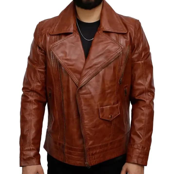 PU Leather or Lambskin Leather Jacket Brown Color Biker Style