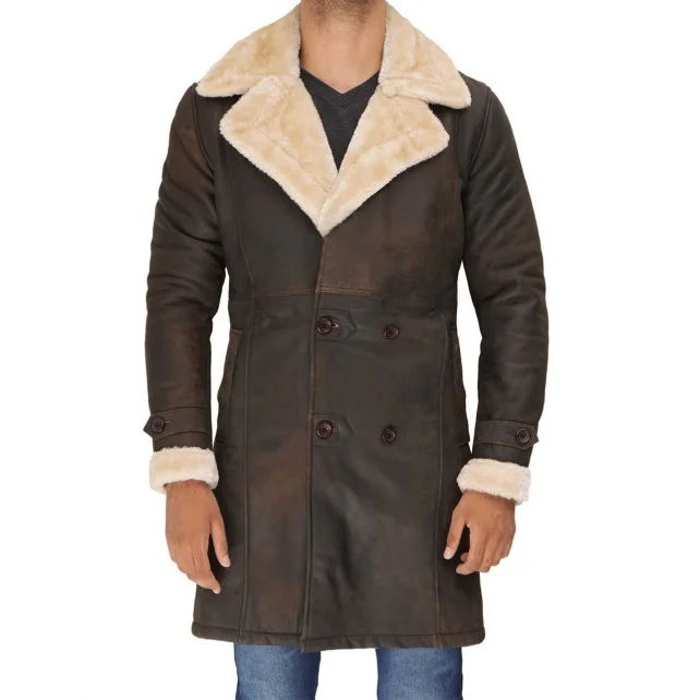 Moreover, it has a distressed brown finish to add vintage beauty to its modern style. Each sleeve has a fur cuff and an extra loop with a button for a unique character. The brown leather shearling coat has a slim-fitted design that gives your body a tall and contoured look.Ā