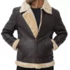 Mens Brown Sheepskin Aviator Leather Jacket With Shearling Collar