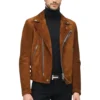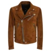 Brown Suede Biker Jacket For Mens