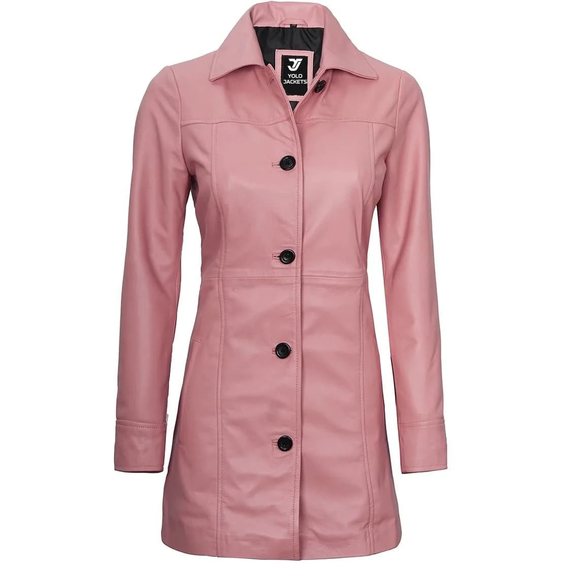 Improve your style with our magical Hot Pink Leather Coat. This outfit is specially designed for women who love to step out of their comfort zone, to experience the glamor of bold fashion. It is made of lambskin and PU leather to ensure the durability of this attire. The inner soft lining makes it comfortable for everyday wear. The button-down collar and shirt collar complement its modern structure and the long sleeves. Two side pockets, and one inside pocket keep your hands warm and stuff secure. Whether you want to dress up for a formal gathering or dress down for a casual purpose. This Leather Car Coat Women will make your appearance unique among others.