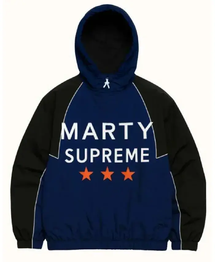 Timothee Chalamet Blue and Black Marty Supreme Hooded Jacket