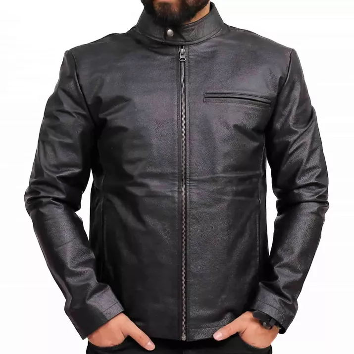 This Men’s Leather Cafe Racer Jacket is a multifunctional jacket that will never go out of style. Tailored from soft real lambskin, it is both warm and durable. The black leather biker outfit for men has a stand-up collar with a snap button, long sleeves, and a front zipper closure. Multiple pockets which have two side pockets, one chest pocket, and two inside pockets provide plenty of storage options for your necessities. Available in sizes XS to 3XL, this casual, seasonal, transitional jacket can be work or weekend to suit any occasion and event.