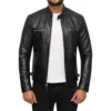 Mens Black Leather Racer Jacket