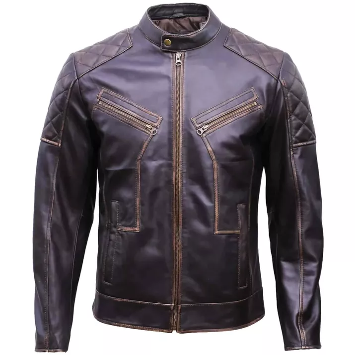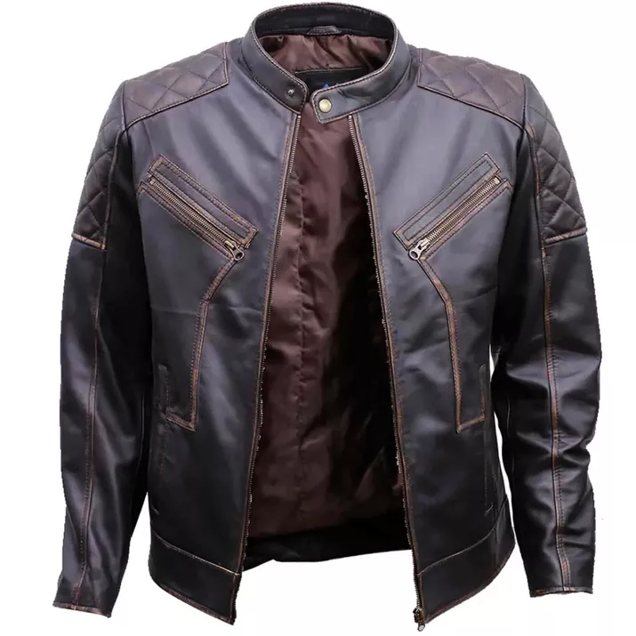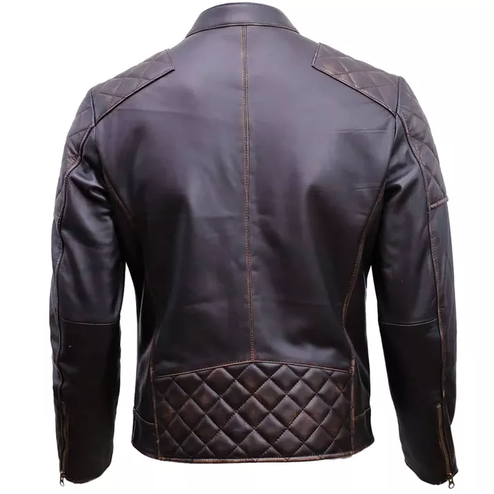 Men’s Cafe Racer Distressed Brown Quilted Leather Jacket