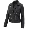 Improve your style with this bold black real leather jacket womens that is specially designed to complement every woman. Made with real leather with a deep matte black finish that adds a vintage touch. Its soft polyester lining will keep you comfortable and warm in chilly weather. This black real leather jacket womens has an asymmetric zipper closure, three side pockets, and one inside pocket that make it practical for everyday wear. It’s an ideal choice for all those women to look polished without compromising on comfort.