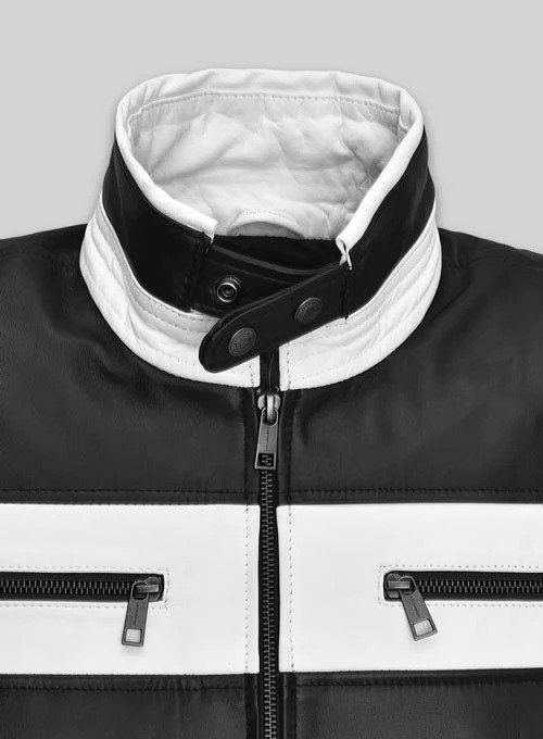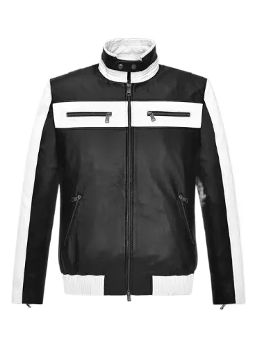 Sebastian Stan Mens Black & White Leather Jacket
