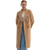 Tan Wool Tailored Longline Button Coat With Lapel Collar Womens
