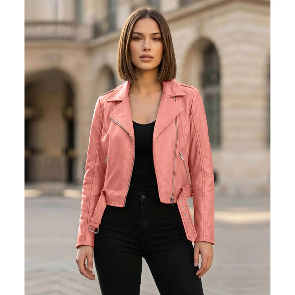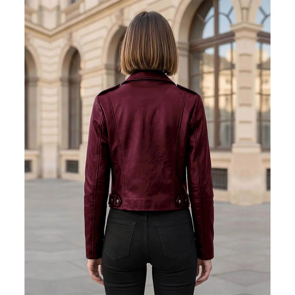 The most outstanding feature of this Women’s Biker Black Leather jacket is that it is very versatile. Additionally, it is available in a variety of colors. Available in the traditional Black shade as well as expressive colors such as Pink, Red, Maroon, and Brown. These colours allow you to choose the style that portrays your personality. Wear the black one with boots and denim to create the classic biker style. Furthermore, choose a bright color to bring some vibrant energy to the neutral ones. The structured design works equally with dresses, jeans, or skirts, making it an all-year-round must-have. It is a good biker jacket that will give you confidence, durability, and an irresistible style, whether you are going out on a night drive, attending a concert, or just need a strong layer. It is a signature item designed for women who lead with attitude and elegance.