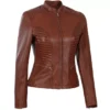 Women’s Brown Quilted Cafe Racer Leather Jacket